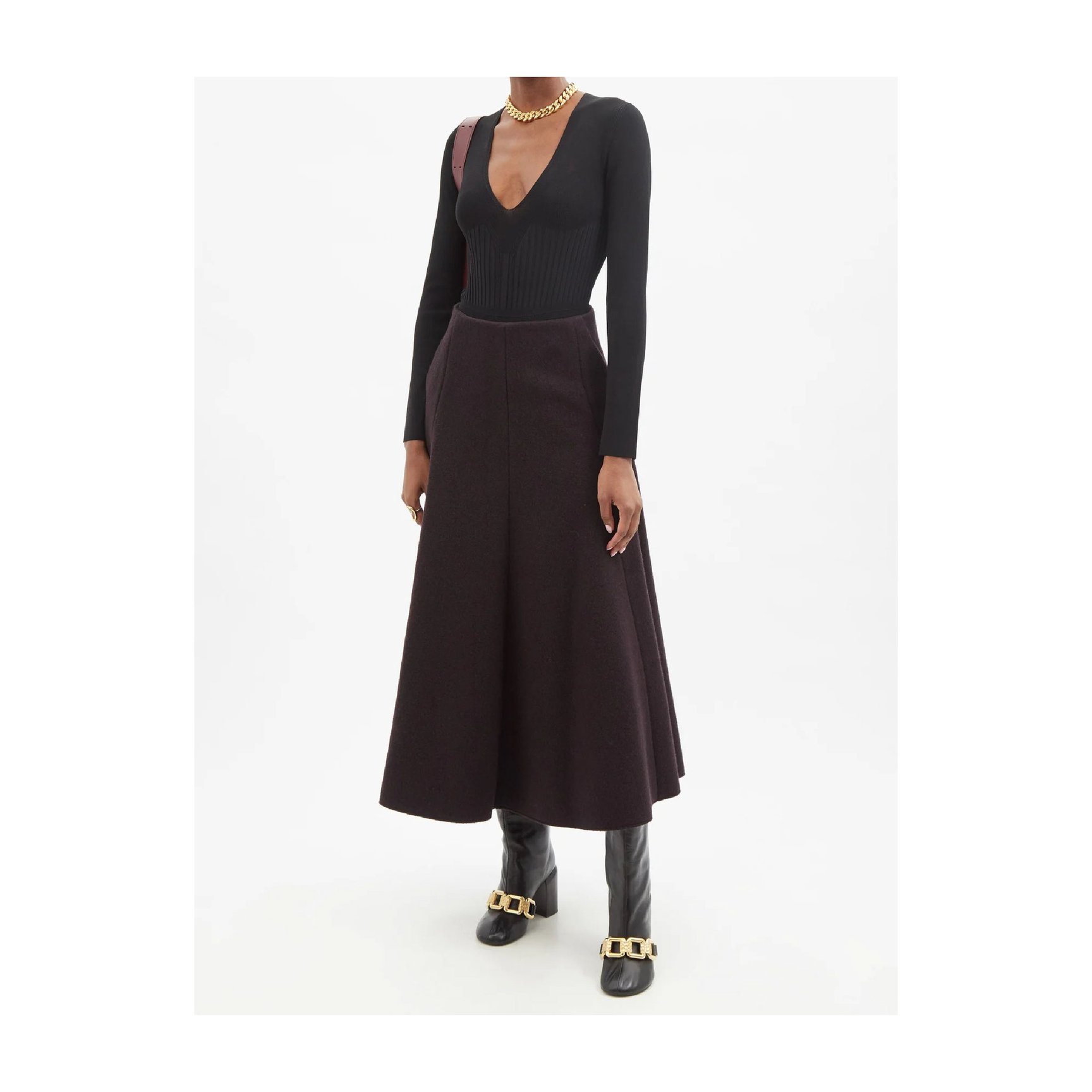 おしゃれなウェアをもうひとつ、「ロクサンダ(Roksanda)」の大胆なパネルカラーに一目惚れしてしまうセーターをご紹介。華奢な編みのタートルネックとボリューミーなバルーンスリーブで洗練されたシルエットを完成させた、一枚でスタイリングが決まる華やかな一着です。