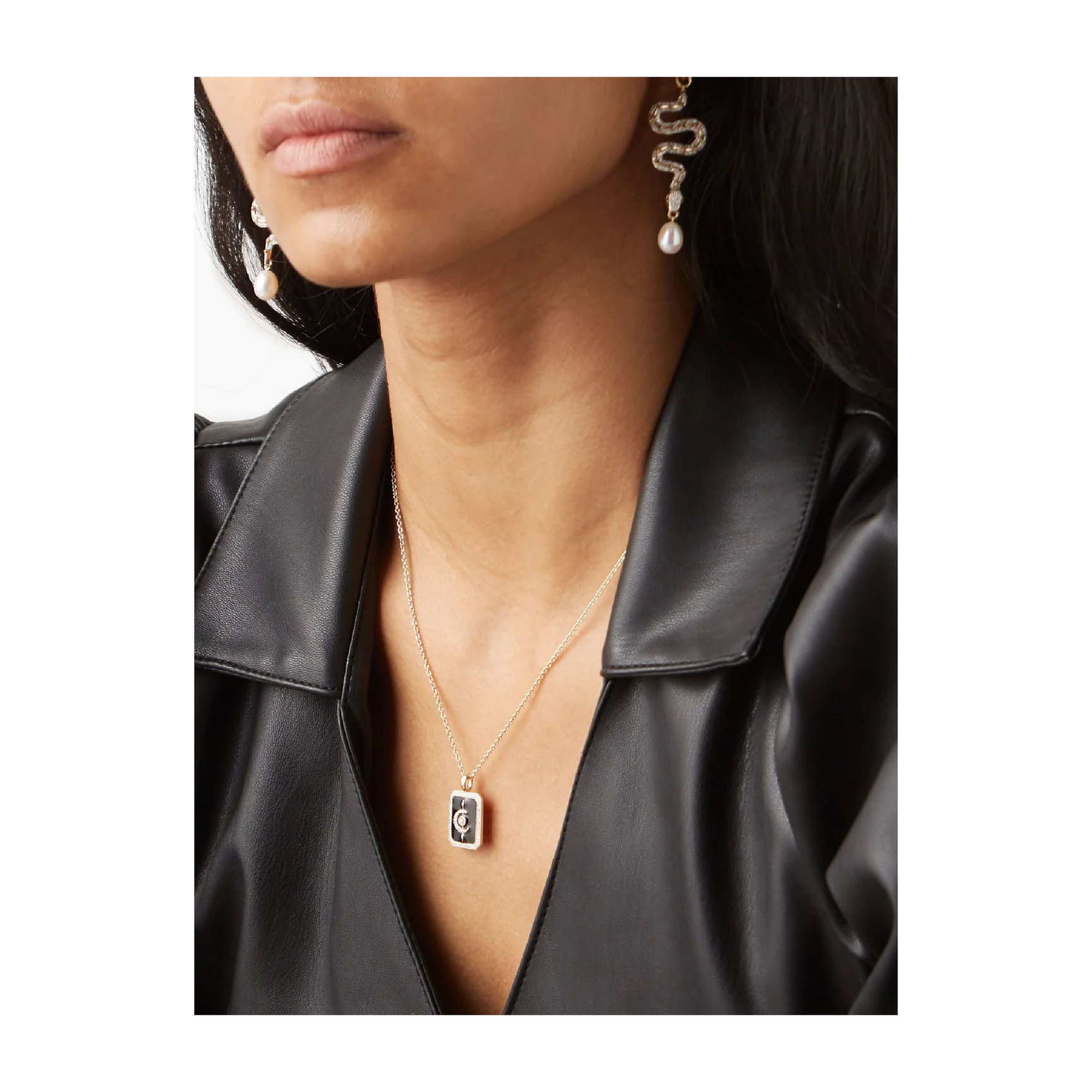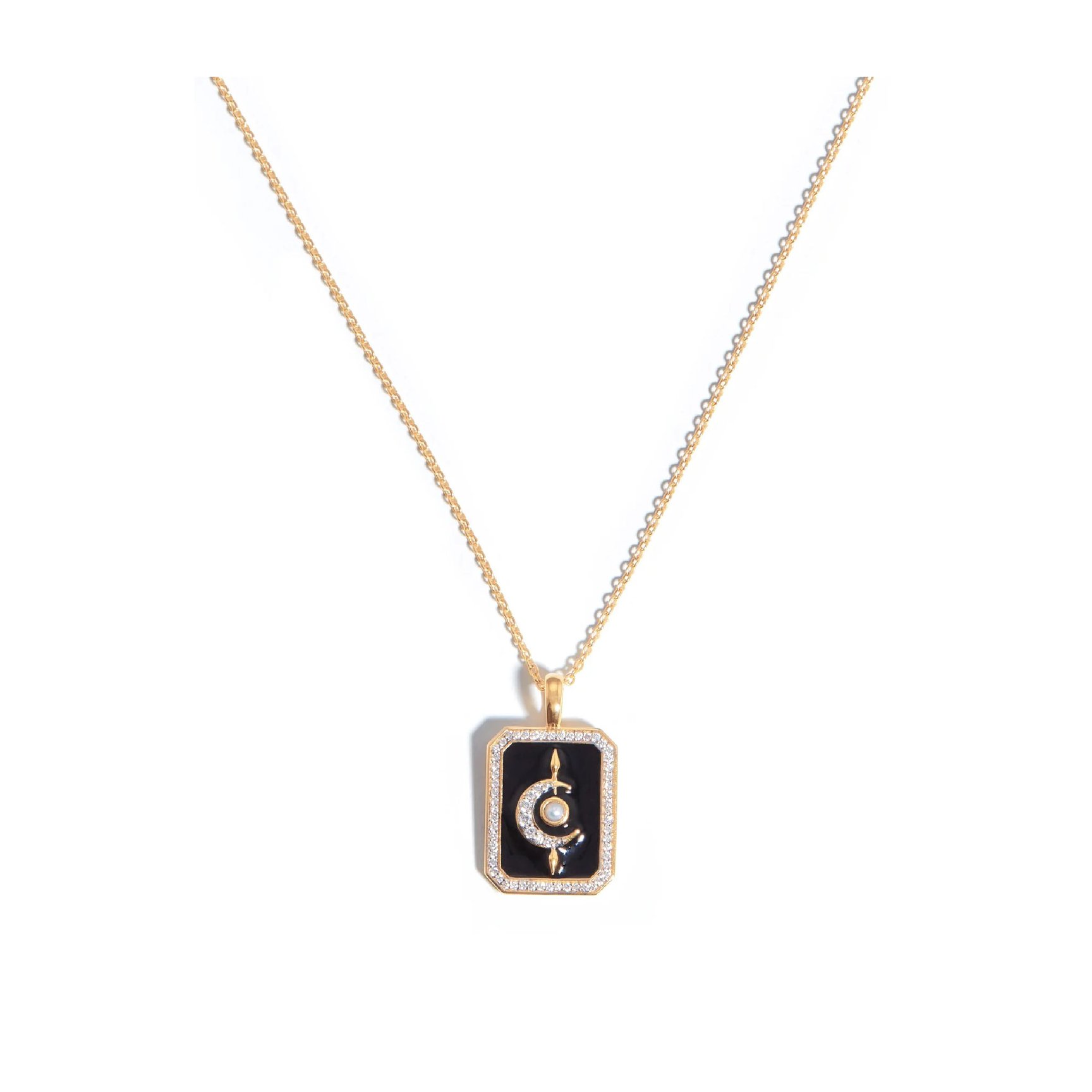 最後にご紹介するのは、「ミッソマ(Missoma)」と「ハリス?リード(Harris Reed)」のコラボジュエリー。個性的で緻密なデザインに心惹かれるコレクションの中から、デイリーにもマッチするジェンダーレスなネックレスをチョイス。ブラックエナメルに三日月が輝くロマンティックなペンダントは、身に着けると自信が漲るようなパワーを秘めています。