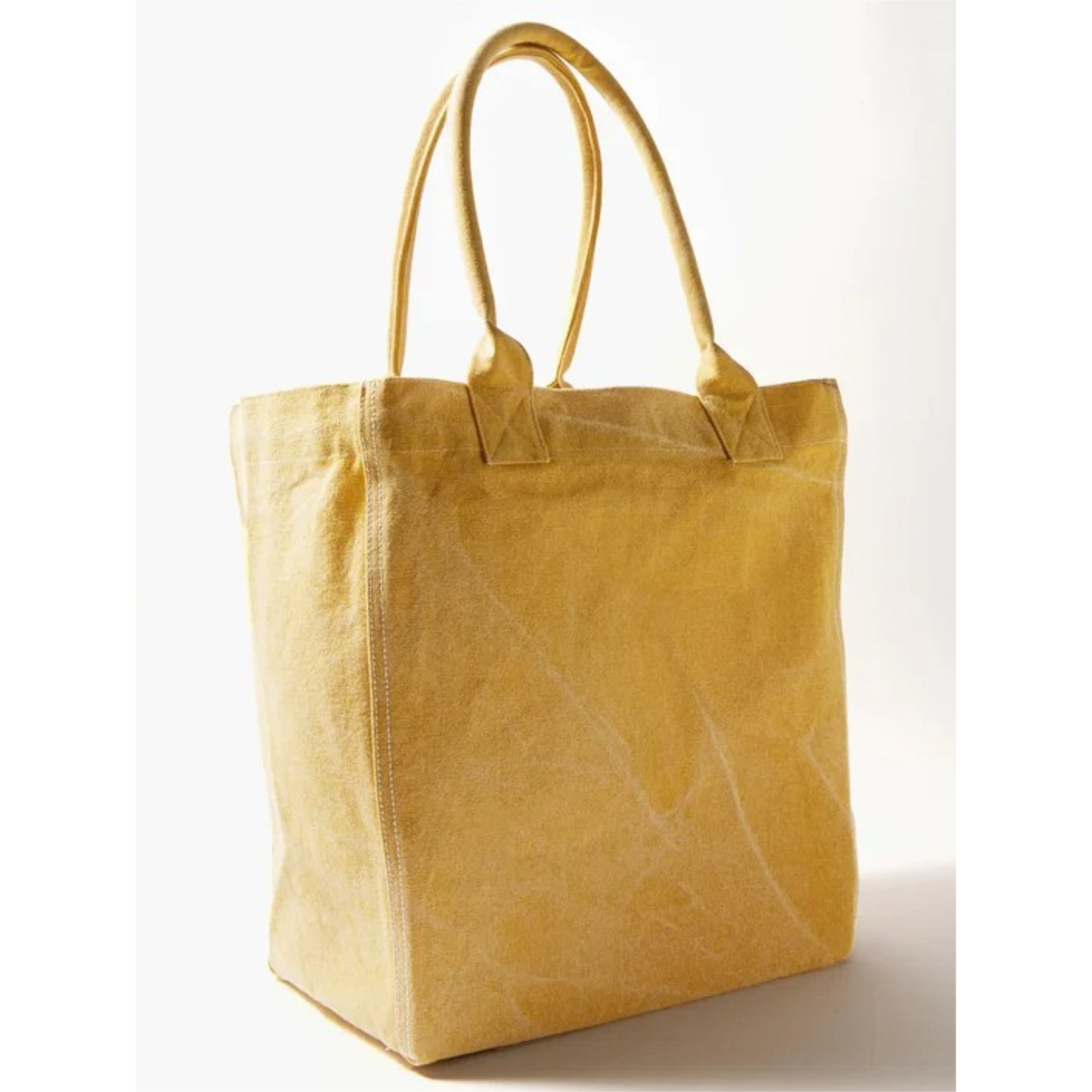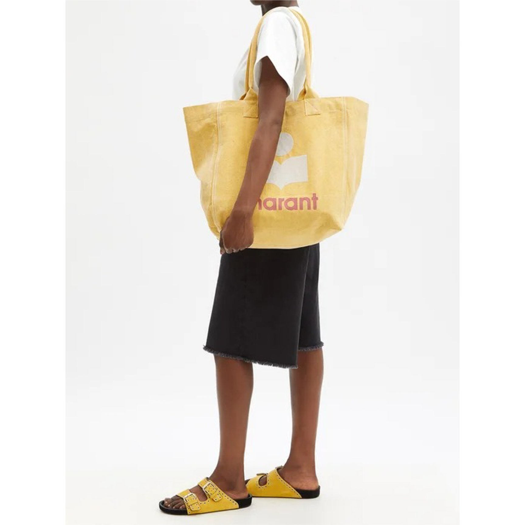 一泊旅行の荷物もすっぽりと収まる「イザベル マラン(ISABEL MARANT)」のトートバッグ。くたっとした質感のファブリックにヴィンテージライクなロゴデザインをオンしたバッグは、ヘビーユースしてしまいそう。