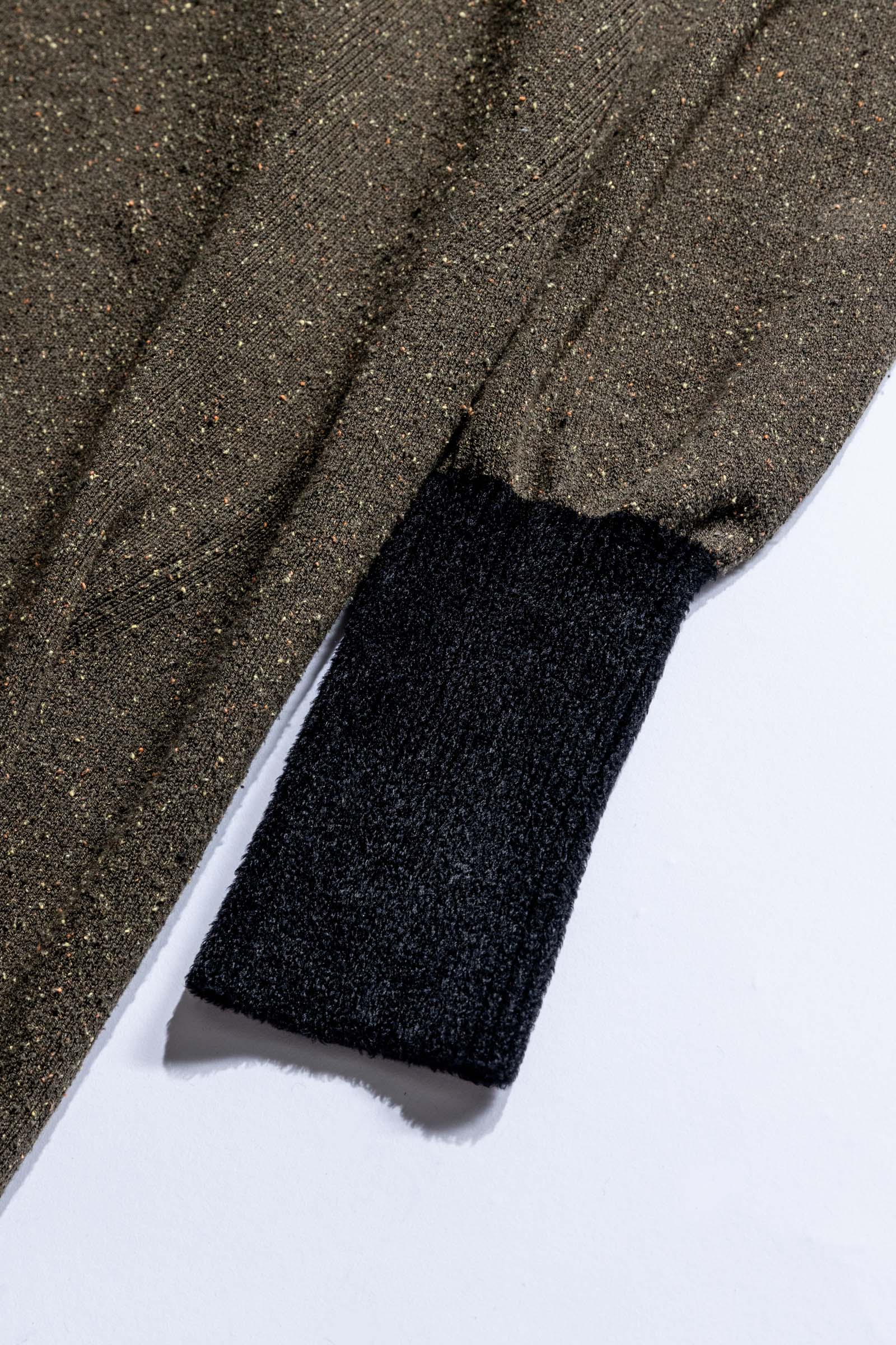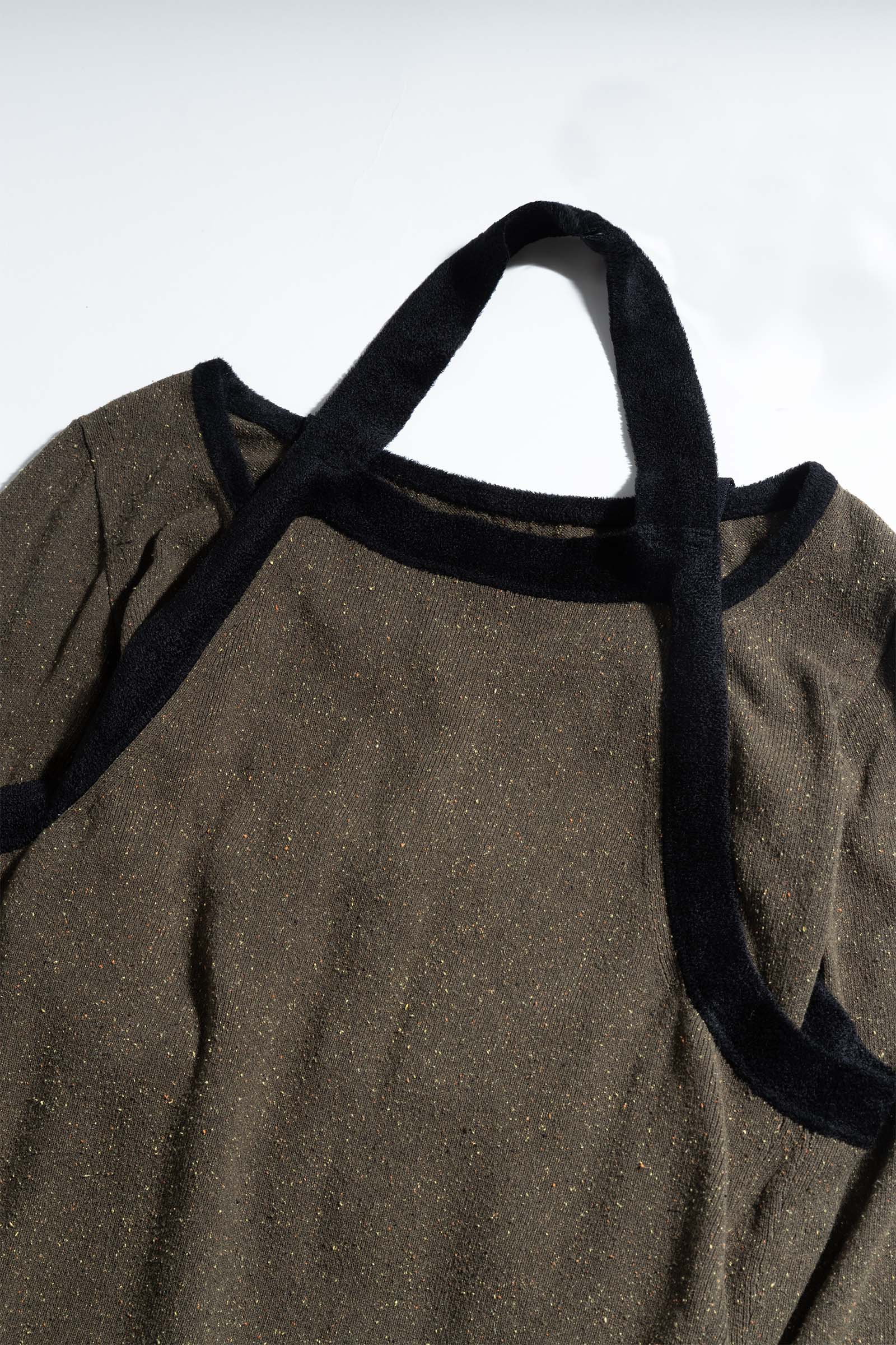 また、リバーシブルで着用できるアイテムも多く展開。その中でもデザイナーの一押しはアルパカシャギーのベストだという。アルパカジャギーは驚くほど軽くて柔らかく、肌馴染みも抜群。裏返すとストライプの生地やガーゼ素材の異素材ドッキングになっているため、表面と大きく表情が変わる仕様となっている。