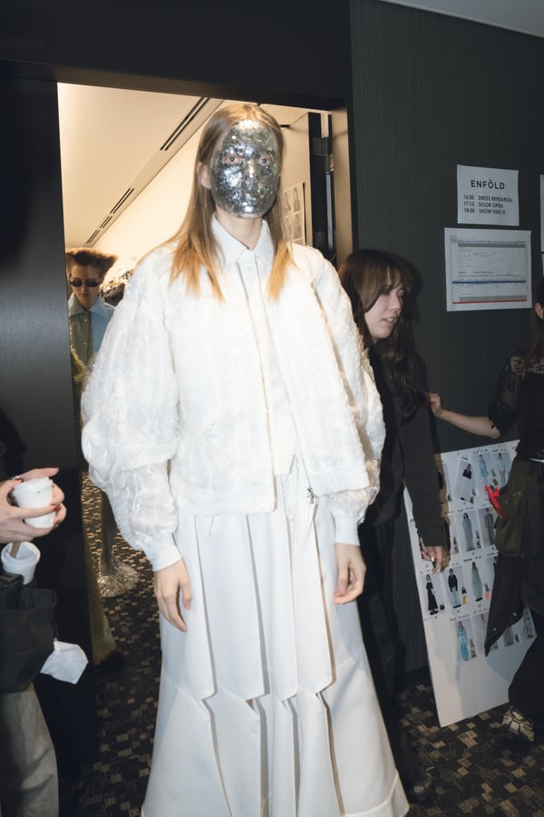 植田みずきが手掛ける「エンフォルド(ENF?LD)」が、初のショー形式となる2026年春夏コレクションを新宿住友ビル 三角広場で発表した。