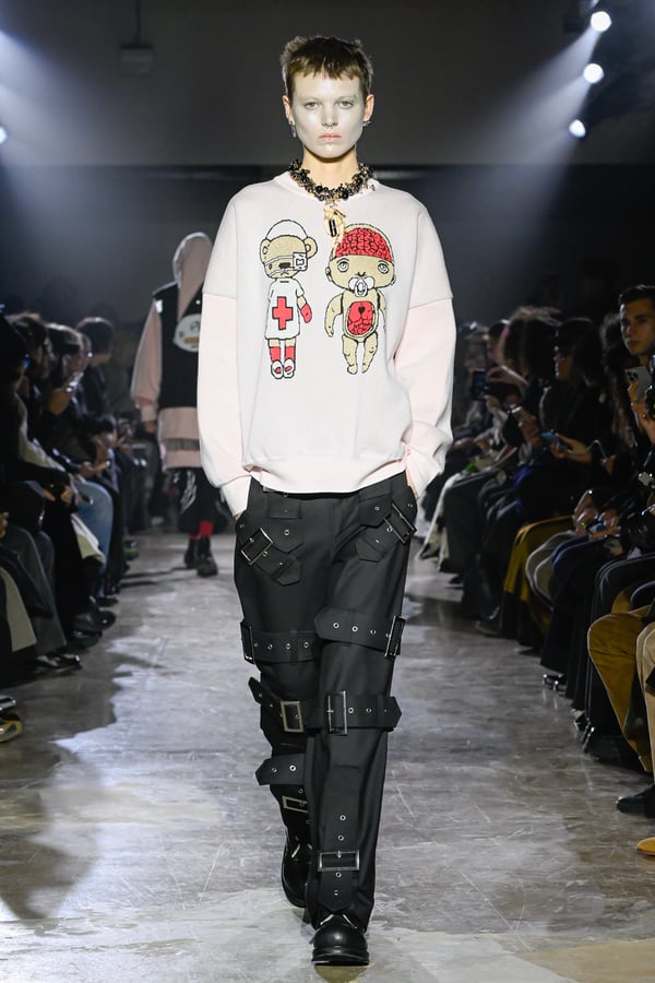 コレクションは、ブランドの核であるパンク精神に基づき、相反する要素の対立と融合を軸に構成された。混沌と静寂、カワイイとハードコアといった対極的な要素を取り入れ、テーマの「HEAVEN」については、一般的な理想郷ではなく、タブーからの解放や社会通念への問いかけを意図したとしている。