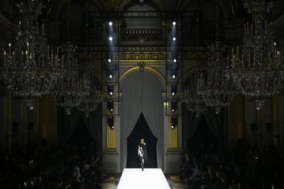 「リック?オウエンス(Rick Owens)」が、パリの現代美術館パレ?ド?トーキョーで2026年春夏ウィメンズコレクションを発表した。2026年春夏メンズと同様に、噴水が上がる水の中をモデルが歩くという演出で、ガリエラ美術館で同時開催されているデザイナー自身のキャリアを振り返る回顧展「TEMPLE OF LOVE」と連動した「テンプル」と題された作品群を披露した。