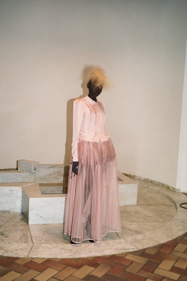 今シーズンのテーマは「Portrait of Her, Unnamed」。人を分類し、枠にはめることで理解しようとする現代の風潮への批判を出発点に、何者かとして定義される前の姿を計32のルックで描き出した。